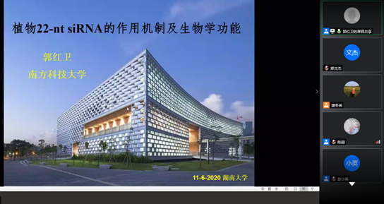 11月6日上午,南方科技大学-北京大学植物与食品研究所所长、生物系讲席教授郭红卫应邀为必赢师生作了题为“植物22-nt siRNA的作用机制及生物学功能”的线上学术讲座。本次讲座由437bwin必赢国际官网姚瑞枫教授主持,437bwin必赢国际官网、隆平分院师生近两百人(其中本科生六十余人)共享了一场精彩纷呈的学术盛宴。