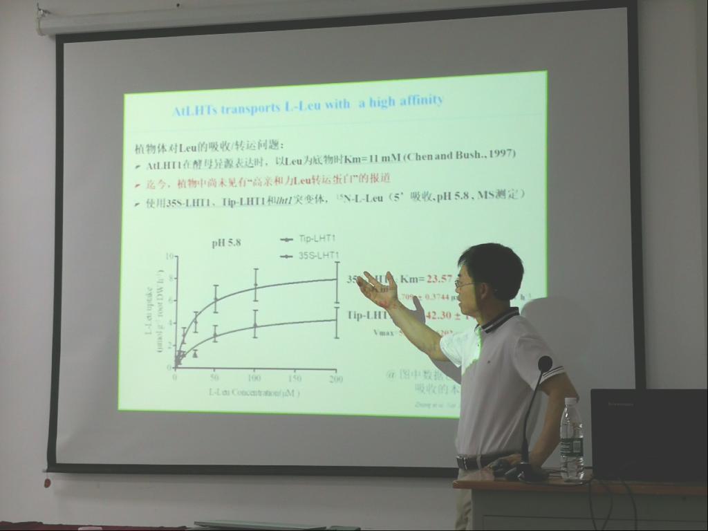 6月12日,中国农业大学资环学院植物营养系刘来华教授到学院进行学术交流,并做《Plant root system growth in response to external amino acids》的精彩学术报告。刘来华教授的报告介绍了其课题组在植物根系响应外源氨基酸的机理、植物氨基酸转运蛋白方面的研究进展,重点讲解了关于拟南芥谷氨酸转运蛋白AtGLR2.5和亮氨酸和异亮氨酸转运蛋白LHT1的研究。刘来华教授生动地阐明了植物根系特异感知外源谷氨酸和亮氨酸,并通过氨基酸转运蛋白介导目的氨基酸转运的机制。刘教授的工作新颖扎实,报告清晰有趣,激起参会师生的广泛兴趣。报告后,刘来华教授与437bwin必赢国际官网师生进行了深入的讨论。