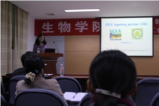 2013年3月29日上午10点,中国科学院上海植物生理生态研究所刘宏涛博士在生物楼报告厅为必赢师生进行了题为“CRY2 signaling Partner CIB1”的学术报告。其课题组以拟南芥和玉米作为对象,研究植物热激信号转导、植物光信号转导、植物蛋白相互作用及转录因子的功能和调控,在Science, Trends in Plant Science等国际刊物发表论文多篇。