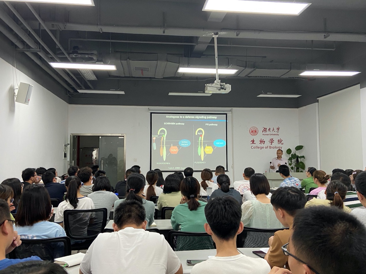 2021年9月17日下午,中科院分子植物科学卓越创新中心周峰研究员应邀来必赢进行学术交流,并为必赢师生作了题为“植物根系天然免疫响应的可视化”的学术报告。本次报告会由437bwin必赢国际官网伍斗生副教授主持,437bwin必赢国际官网众多老师和同学参加了本次报告会,会场座无虚席。