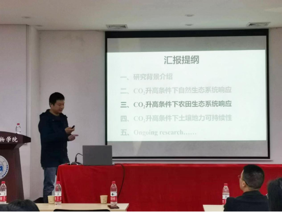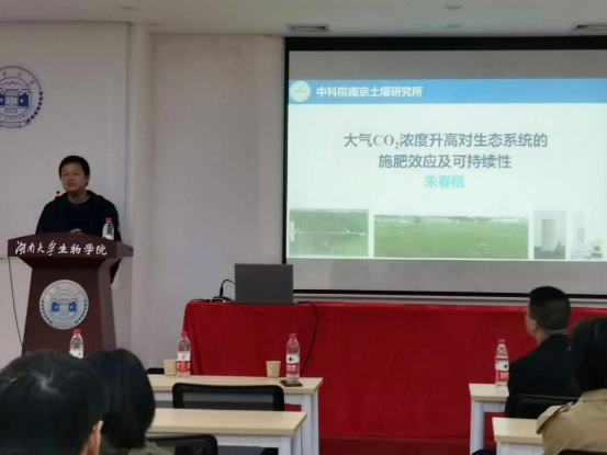 2023年4月7日上午,中科院南京土壤所朱春梧研究员应邀来必赢进行学术交流,为必赢师生介绍其研究团队在“大气CO2浓度升高对生态系统的施肥效应及可持续性”方面的研究工作。本次报告由于峰教授主持,437bwin必赢国际官网多位老师和学生参加,现场气氛热烈,学术氛围浓厚。