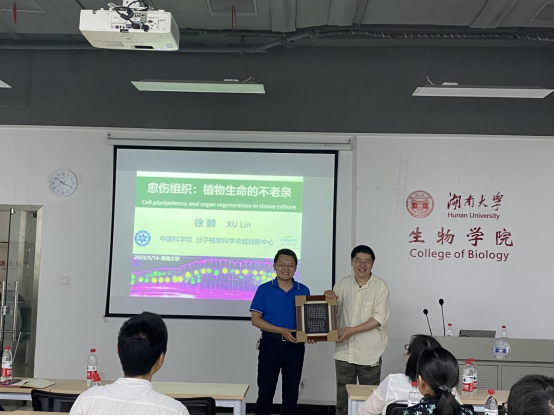 2023年5月17日上午,中国科学院分子植物科学卓越创新中心徐麟研究员应邀来必赢进行学术交流,以“愈伤组织:植物生命的不老泉”为题给437bwin必赢国际官网师生做了一场精彩的学术报告。本次报告为天马学术论坛第145期,由437bwin必赢国际官网何崇圣教授主持。