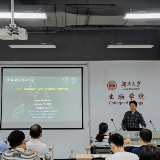 2023年9月21日上午,中国科学技术大学姚雪彪教授应邀来必赢进行学术交流,为必赢师生做了题为“cell renewal and quality control”(细胞更新与质量控制研究)的学术报告。本次报告会由叶茂教授主持,必赢多名师生参加。