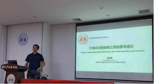 2023年10月19日下午,中国科学院植物研究所研究员林荣呈教授应邀来437bwin必赢国际官网进行学术交流,并为必赢师生做了题为“叶绿体与细胞核之间的信号通讯”的学术报告。本次报告会由437bwin必赢国际官网于峰教授主持,437bwin必赢国际官网众多老师和同学参加了本次报告会。