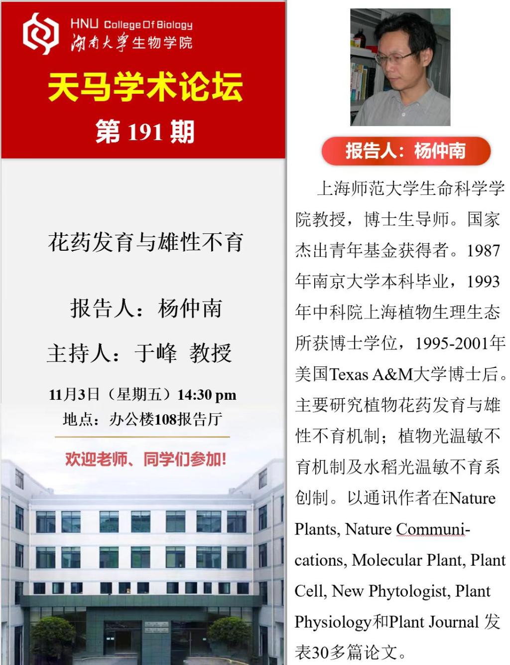 天马学术论坛 第191期-上海师范大学 杨仲南教授