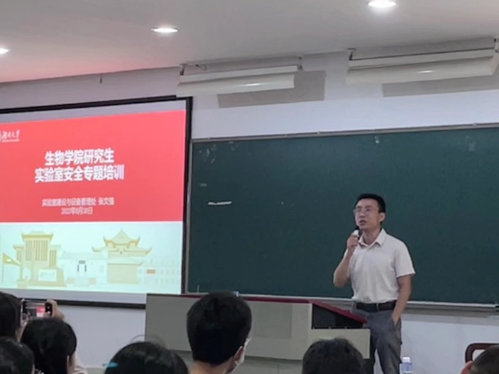 8月30日晚上19:15,437bwin必赢国际官网2022级研究生新生入学教育系列活动之——“实验室安全专题培训”讲座于437bwin必赢国际官网综合楼 203教室顺利举行。本次讲座邀请张文强老师主讲,研究生辅导员刘浩老师主持,全体2022级研究生参与。