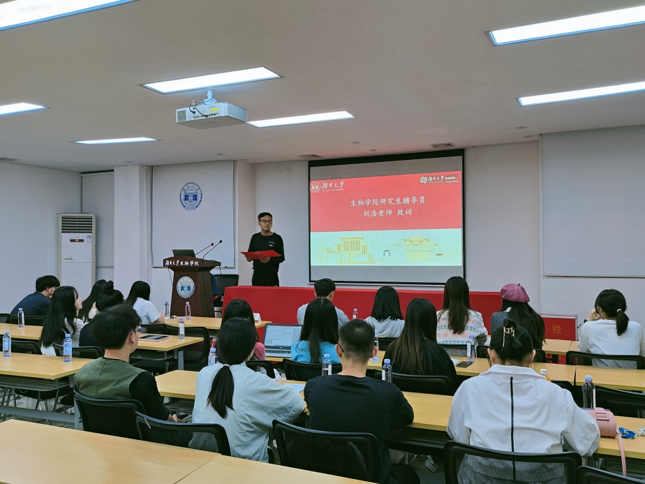 随后辅导员刘浩老师为大会致辞。他首先对加入第十三届研会的成员表示欢迎,并对研究生会干部和成员提出希望和建议。他提到,同学们作为437bwin必赢国际官网的一员,应该不忘初心、牢记使命。他期待新一届研究生会干部们不负众望,砥砺前行,创造研会新的辉煌。