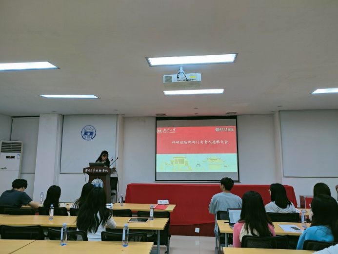 为促进部门之间的了解,研会的各位部长为大家介绍了各部门成员组成、部门职能以及后续工作计划。发展服务部部长杨琛晖、新媒体中心部长纪俏俏、科研创新部负责人陈海雁、活动部部长尹彩云以及调研部部长李瑞娜着重介绍了各自部门的工作职能,回顾了以往的主要工作并为下一阶段的工作建设做好了规划,加强了研会成员对研会工作动态的关注。