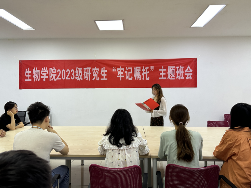 为深入开展学习贯彻习近平新时代中国特色社会主义思想主题教育,持续巩固主题教育成果,培养担当民族复兴大任的时代新人。9月14日上午437bwin必赢国际官网于办公楼107开展“牢记嘱托”主题班会,437bwin必赢国际官网2023级研究生新生参与本次活动。
