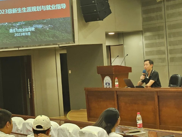 讲座分为两部分,新生生涯规划指导部分由招生与就业指导处综合与就业指导科科长钟锐老师主持,心理健康教育讲座由党委学生工作部心理健康教育科陈晓萍老师主持。