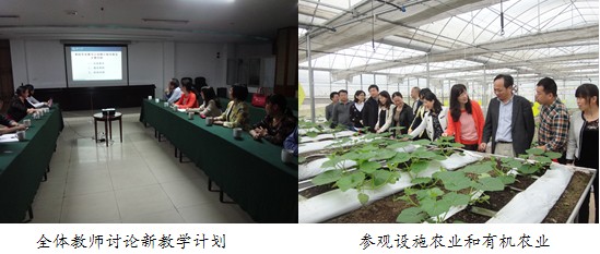 会后,在公司基地负责人的带领下,全体教师走进公司有机农业生产基地,参观了公司现代化设施农业和有机农业生产,体验了现代化农业设施对传统农业带来的技术革新,加深了对生物技术在现代农业广泛应用的认识。老师们纷纷提出作为实践性专业生物技术应该走向田间地头、走向生产一线去培养学生。为此,刘选明教授代表437bwin必赢国际官网与公司董事长张浩先生对本科人才培养和双方技术合作等事宜进行洽谈,有望在公司设立实践教学基地,为生物技术专业学生体会生物技术在现代化农业领域的应用提供活样本。这次通过对生物技术在现代农业应用实例的考察和对生物技术专业教学的思考,全体教师对生物专业培养计划有了新的认识,为修订本专业教学计划奠定了坚实基础。