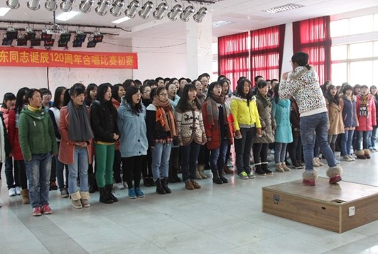 2013年12月22日上午9点,437bwin必赢国际官网组建的合唱队全体成员于天马团委活动室内参加了“437bwin必赢国际官网纪念毛泽东诞辰120周年合唱比赛”预赛。高耀鸿副书记、何晓晓副院长、辅导员李钰老师、谢凤汁老师都到现场为学生加油打气。