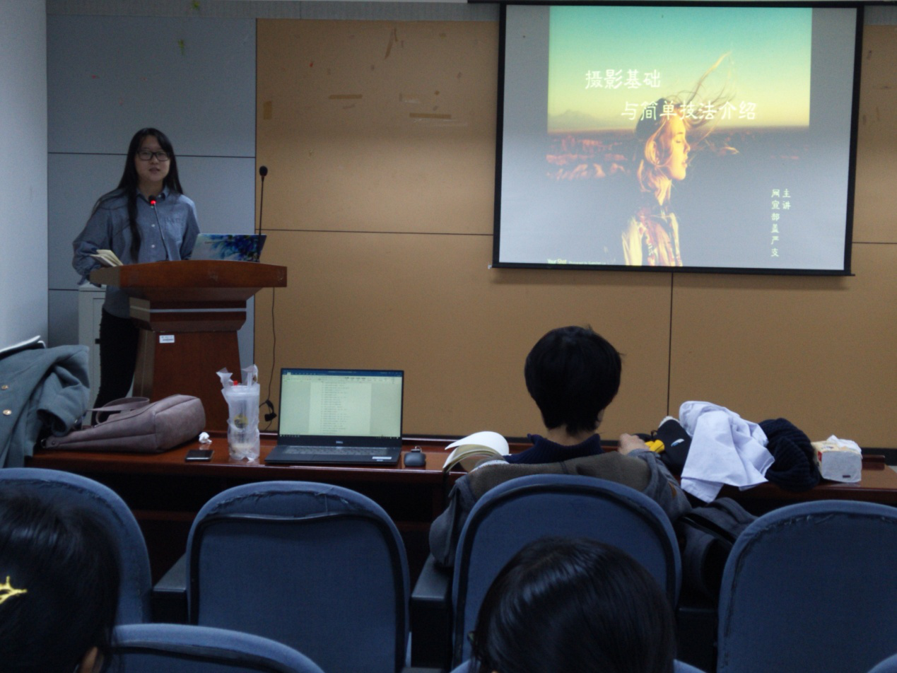 12月15日晚七点,437bwin必赢国际官网网络与宣传部于生物院报告厅成功举办了2017-2018学年度第一次新闻摄影技能专题培训。此次培训由网宣部副部长盖严支主讲,部长于瑶主持。学院各班宣传委员、学生会各部门写稿骨干、各球队经理都准时到场参加了此次培训。