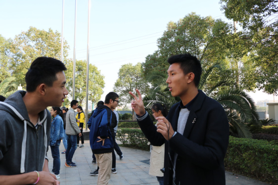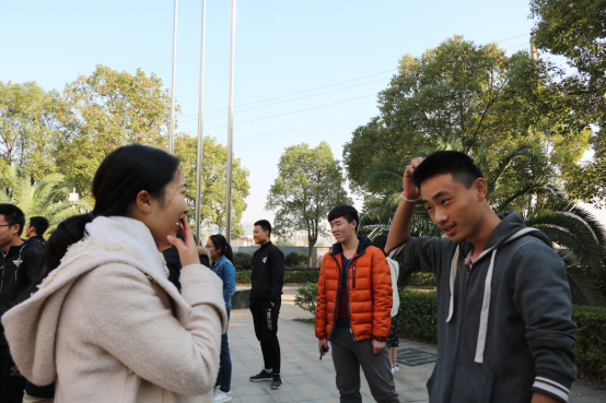 活动在同学们饱满的热情中继续,第二个游戏是传猜成语,每个队按一列纵队站好,背对指挥人员,指挥人员告诉第一个人一个成语,再依次以肢体语言告诉你的下一个人,队列最后一人准确说出成语,即可过关,总共五关,成语的描述难度也越来越大。每个组都毫不犹豫地将组里动作表达最好的同学推向第一个,理解能力最高的同学放在最后一个,八仙过海,各显神通。第四小队的沈世纪在用动作向本队成员描述成语浑水摸鱼的时候,用手在空气中虚舞,像是在抓什么,但后一个人完全没看懂,而旁边的其他队成员早就看穿发出阵阵笑声。场面十分热闹,不乏“黑洞选手”把成语越传越走样的情况,虽然这些小组并没有取得最终的胜利,但通过游戏却给在场的所有同学带来了莫大的欢笑。趣味运动会在同学们的欢声笑语中圆满结束。