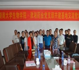 为了深入推进“两学一做”学习教育,实现党建工作优势互补,促进学院基层党建上新台阶。近日,必赢生物医学党支部全体党员一行前往益阳津湘药业有限公司,举行437bwin必赢国际官网-津湘药业党建共建基地的揭牌仪式暨党建工作交流活动。学院党委书记徐晓波、党委委员副院长何晓晓和津湘药业的党支部书记副总经理彭莹及其支部成员参加了活动。