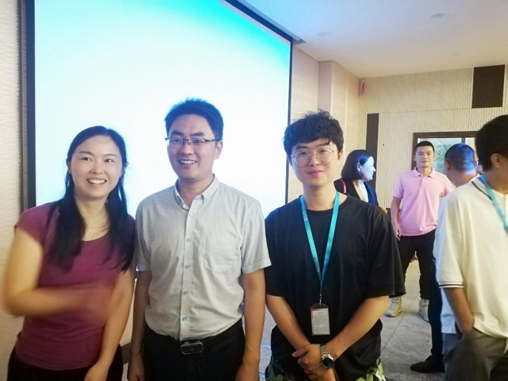 学院参会师生合影,本科生刘志强,生命学院教师卓睿、陈燕、湖大教师唐文谦(从左至右)