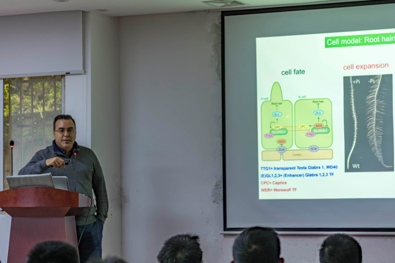 2019年4月3日下午,阿根廷国家研究委员会José M. Estevez教授应于峰教授邀请来必赢进行学术交流,为学院师生们作了题为“To grow or not to grow,molecular mechanisms of cell sizeregulation inArabidopsis”的学术讲座。Dr. José M. Estevez实验室主要利用根毛作为模型研究细胞的极性生长。本次学术讲座,Dr. José M. Estevez系统介绍了EXTs(Extensins)和RSL4(Root hair defective 6 like 4)等蛋白在根毛极性生长调控方面的研究进展。随后Dr. José M. Estevez与在座的师生进行了交流和互动。