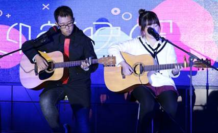 第一轮抽奖活动则再一次调动同学们的激情,丰厚的奖品更让获奖同学欢呼雀跃。抽奖结束后,几位来自不同专业的17级年级长身着正装霸气出场,在一段感人、真诚的交心之语后带来舞蹈《come on baby》。从霸气到搞笑的瞬间切换让同学们在笑声和舞蹈中对辛勤付出的他们更为敬佩和喜爱。随后,小品《考试》趣味横生,几位“考生”各出奇招,或是偷偷翻书,或是写在手臂上,更有场外“亲戚”救援,精彩生动的演出给大家带来了不少的欢乐,“老师”的东北口音更是节目的点睛之笔。小品结束后,四位同学身着盛装,共同演唱、演奏了西班牙舞曲《despacito》。带有异域风情的嗓音加以尤克里里、小提琴的伴奏让同学们享受了一场浩大的音乐盛宴。