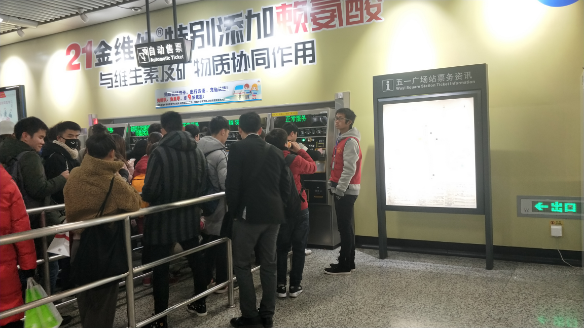 活动当天,我们的主要工作是自动售票机购取票的协助和进出闸机的引导,而为保证同学们的工作积极性,此次活动实行了轮班休息制。虽然天气十分寒冷,志愿者们一站就是一个小时,冻得手脚冰凉,可是这点艰难并没有摇动志愿者们服务的心,他们始终坚守在岗位上,热情地为来往的乘客们提供服务。有的志愿者还主动提出前往人流密集的区域分担工作,在整个服务过程中,总能看见志愿者积极为乘客们指引去向,协助取购票的情景。虽然有时也会遇到一些志愿者们无法解答的问题,但他们会及时前去询问或向地铁站工作人员反映情况,竭尽所能给长沙市民带来帮助。