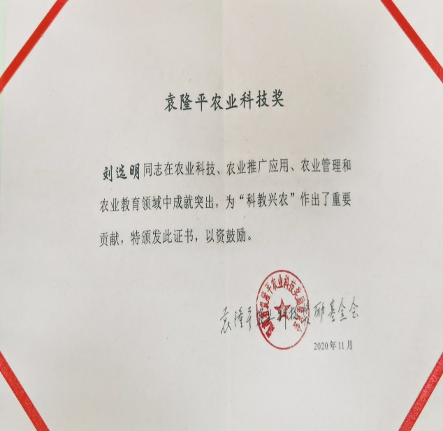 11月13日上午,第十一届袁隆平农业科技奖励大会在杂交水稻国家工程研究中心(长沙)隆重举行,437bwin必赢国际官网刘选明教授喜获第十一届袁隆平农业科技奖励(创新奖),90岁的袁隆平院士亲自为获奖者颁奖。袁隆平农业科技奖励基金设置主要是在全国奖励在农业科研、农业产业化、农业推广应用、农业管理和农业教育方面做出了突出贡献的先进个人或团体,是全国重要的科技奖励之一,过去已经颁发了十届。