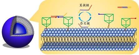 图2.可逆调控DNA纳米结构在细胞膜囊泡表面组装与解组装(摘自J. Am. Chem.Soc., 2017, 139, 12410-12413)