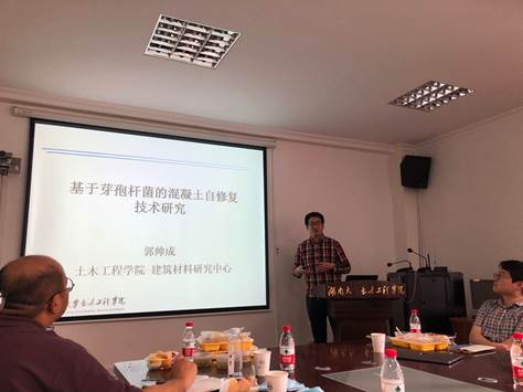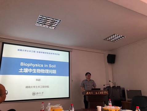 会议下半场,土木工程学院艾正涛教授、郭帅成教授、康馨教授和张超教授分别以“呼吸道传染病人际间空媒传播”、“基于芽孢杆菌的混凝土自修复技术研究”、“微生物诱导碳酸钙沉积加固岩土体研究”、“土壤中的生物物理问题”为题做了精彩的报告,向大家介绍了自己的研究方向和关注的科学问题。