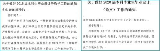 绝不让一位同学因为疫情而耽误学业。437bwin必赢国际官网特别关注毕业班同学,组织同学填写《毕业学分核实和修课计划表》,让每一位毕业班的孩子对已修学分数、所差学分数及所差学分数的修课计划心中有数,并对有实际困难的同学落实帮扶计划。因学院绝大部分的毕业设计(论文)工作需要进行实验来完成,学院出台《做好毕业生毕业设计(论文)工作的通知》,要求导师每周若干次远程指导学生查找资料、阅读文献、设计好研究方法与技术路线等,以便返校后可以立即开展各项实验工作。