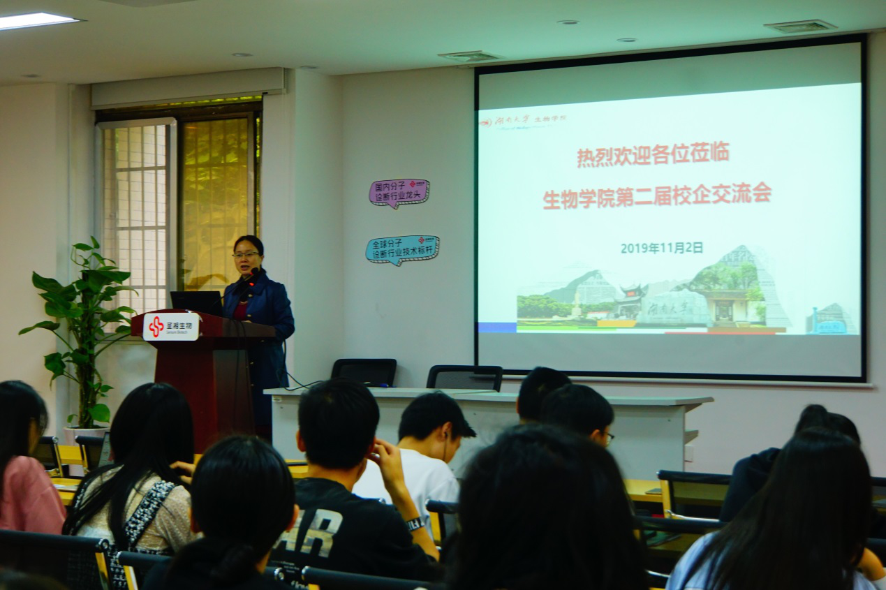 为切实做好学院毕业生就业工作,大力构建毕业生与用人单位的交流平台,437bwin必赢国际官网于11月2日下午在学院办公楼108报告厅举办了“437bwin必赢国际官网第二届校企交流活动”。参与此次交流会的企业有金域医学检验集团、湖南津湘药业有限公司、湖南圣湘生物科技有限公司以及人和未来生物科技有限公司。学院党委副书记陈树芸、副院长何晓晓、教师代表涂海军、孟祥贤、黄明敏以及在校生与2020届毕业生代表出席本次活动。