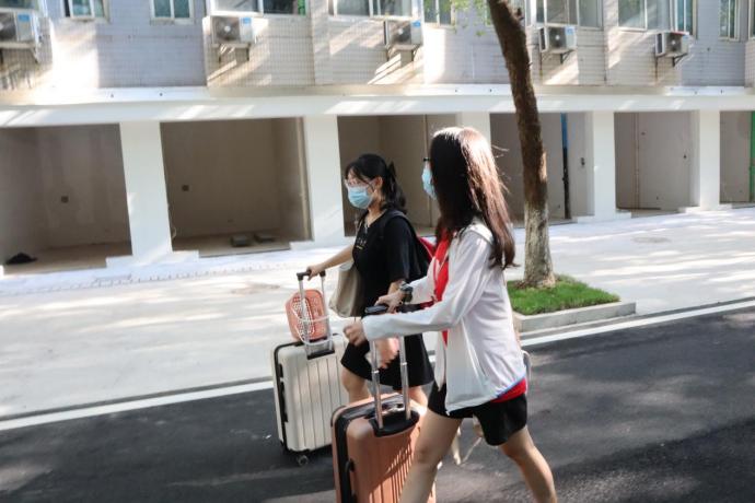 早上7点,第一批新生进入了园区,告别前来陪同的家长,带着好奇与紧张,迈进了寝室园区的门。