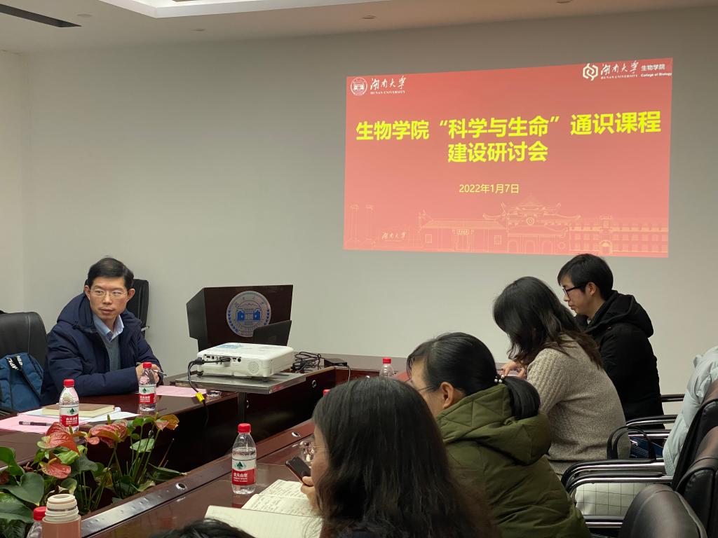 2022年1月7日上午,437bwin必赢国际官网“科学与生命”通识课程教学研讨会在437bwin必赢国际官网实验楼A404会议室举行。教务处副处长刘杰、437bwin必赢国际官网党委书记李勇军、副院长何晓晓出席,学院通识课程任课教师20余人参加,会议由437bwin必赢国际官网副院长涂海军主持。