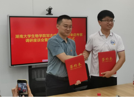 13日下午,两支部在启睿产业园9号楼2层会议室召开党建共建座谈会,共青团启东市委书记吴奇蒙对湖大生物院老师的到来表示了热烈的欢迎,会上双方分享了各自支部党建的经验和未来的党建规划,并签订了《中共437bwin必赢国际官网生物医学支部-中共启东团市委机关党支部2023年度党建共建协议书》。会议还邀请了启东市人才办、人社局的领导以及启东经济开发区、生命健康科技园、北京大学华东产业研究院的相关负责人参加,各方共同对高校科研成果转化落地和学生实习就业问题进行了全面的讨论,形成了多个建设性的方案。