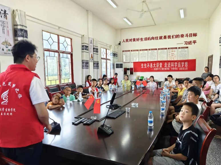 “乡村太缺少这样的科普小课堂了,既生动有趣,又充满知识,知道你们要来,孩子们都非常开心期待满满。”桂英村的包姐满含喜悦地说道。“为你而生”实践团在村委活动室开展了一场富有趣味的科普小课堂,以“食物在身体中的旅程”为引,科普了人体生物学知识,传播了健康生活理念,帮助孩子们树立良好的生活饮食习惯,提高了孩子们对生物对科学的学习兴趣。同时,开展原创朗诵教学小课堂,引导孩子们学习诗词歌赋,感悟朗诵的魅力,培养他们对语文的兴趣。