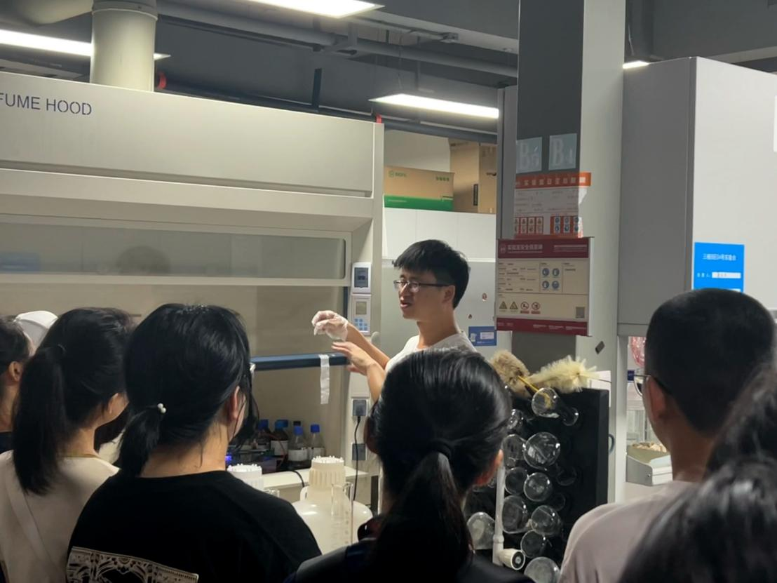 李亚超老师整体介绍了各楼层实验室的分布,从一楼开始,带领生医2302班同学们参观各课题组海报,讲解目前实验发展前沿。李老师强调了实验室操作规范,叮嘱大家在未来实验过程中遵守规范,保护自身安全并鼓励同学们主动联系导师,进入实验室,提高实践能力。