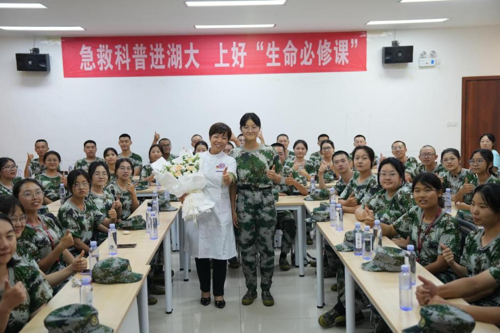 2023年8月31日,党的二十大代表、湖南省人民医院急诊三部ICU护士长徐芙蓉和志愿者走进437bwin必赢国际官网,为2023级生物医学工程专业新生开展应急救护培训讲座。讲座由院党委副书记邹志成主持。