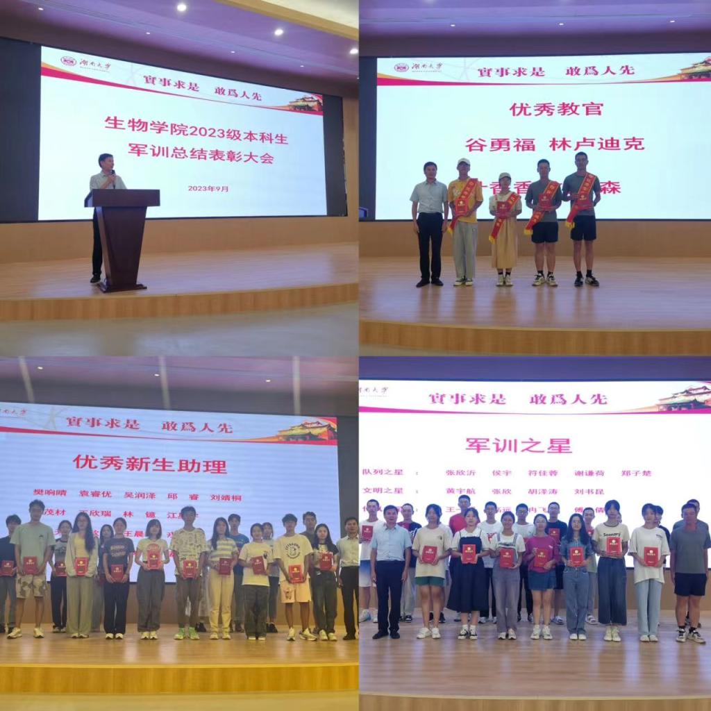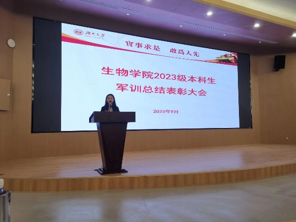 9月10日下午,437bwin必赢国际官网2023级本科生军训总结表彰大会于综合楼108报告厅召开。院党委副书记邹志成、辅导员于淼漪 、四营四连军训教官、新生助理及2023级全体本科生参加此次会议。会议由军训总负责樊响晴主持。