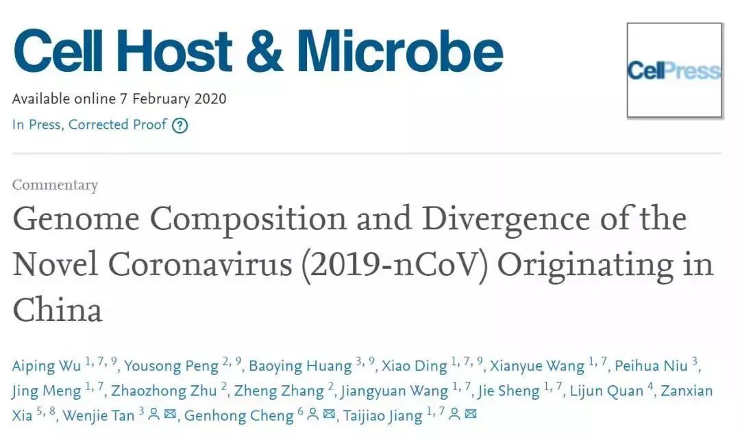 该研究对2019-nCoV已确定的三个基因组和相关冠状病毒的基因序列进行比较,其中包括1008条人SARS冠状病毒序列、338条蝙蝠SARS样冠状病毒序列和3131条人中东呼吸综合征(MERS)冠状病毒序列,发现这三株2019-nCoV病毒的基因组序列几乎相同(约29.8kb核苷酸的基因组中只有5个核苷酸差异),与蝙蝠SARS样冠状病毒的关系比与人SARS冠状病毒或人类MERS冠状病毒更为相近。