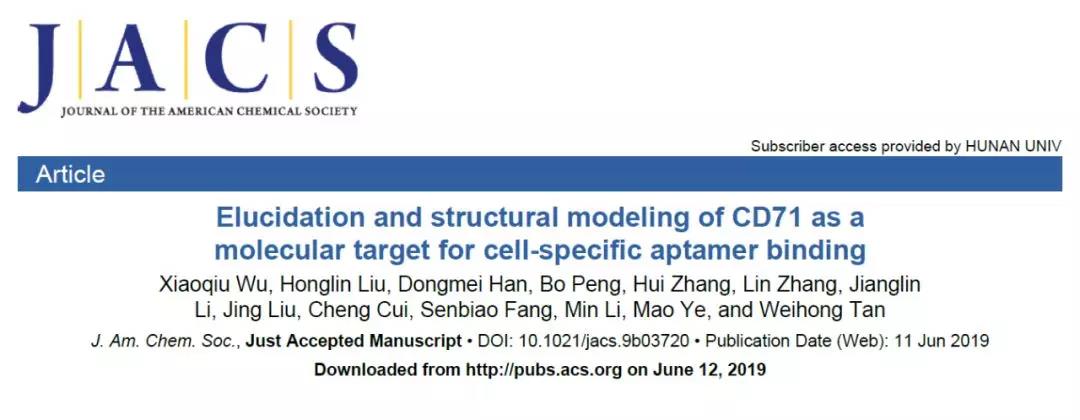 近日,437bwin必赢国际官网叶茂/谭蔚泓团队在J.Am. Chem. Soc杂志发表了题为“Elucidation andstructural modeling of CD71 as a molecular target for cell-specific aptamerbinding”的研究论文,系统地阐明了胰腺癌特异性核酸适体XQ-2d识别靶标的机制。