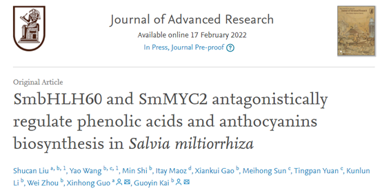 近日,437bwin必赢国际官网郭新红教授与浙江中医药大学药学院开国银教授团队合作在Journal of Advanced Research在线发表了一篇题为SmbHLH60 and SmMYC2 antagonistically regulate phenolic acids and anthocyanins biosynthesis in Salvia miltiorrhiza的研究论文,解析了MeJA 响应性 bHLH 转录因子提高丹参中生物活性化合物酚酸和花青素生物合成的分子机制。