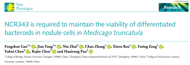 近日,437bwin必赢国际官网潘怀荣教授课题组在植物学国际知名期刊《New Phytologist》上发表论文,报道了蒺藜苜蓿NCR343在调控终极分化后共生体存活方面的重要功能。